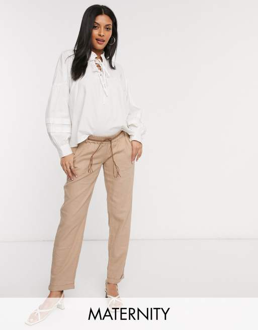 Mamalicious Maternity under the bump trousers in beige ASOS