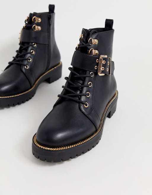 Asos design armour chain clearance lace up boots in black, ASOS DESIGN Antigua chunky ankle boots with chain detail in black clearance