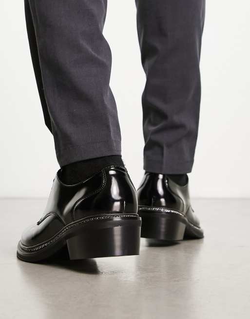 ASOS DESIGN western chain detail lace up shoes in black polished faux leather