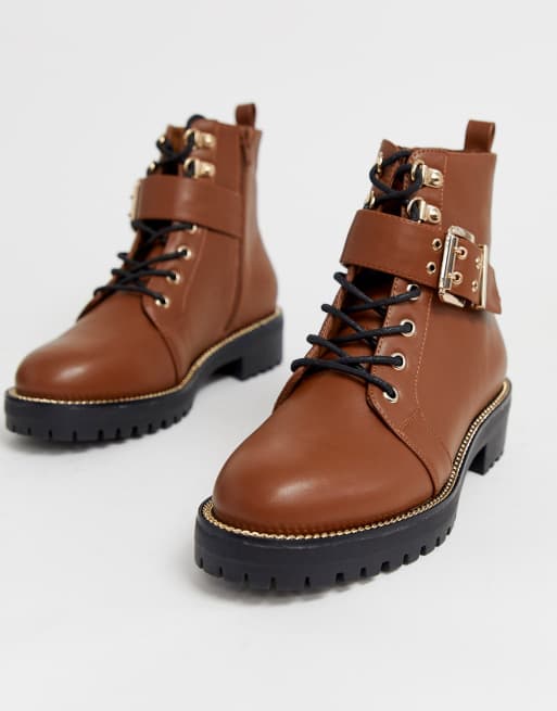 ASOS DESIGN Armour chain lace up ankle boots in tan