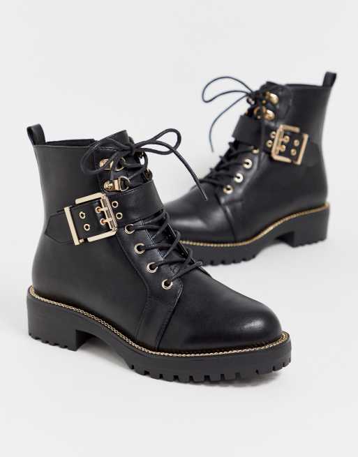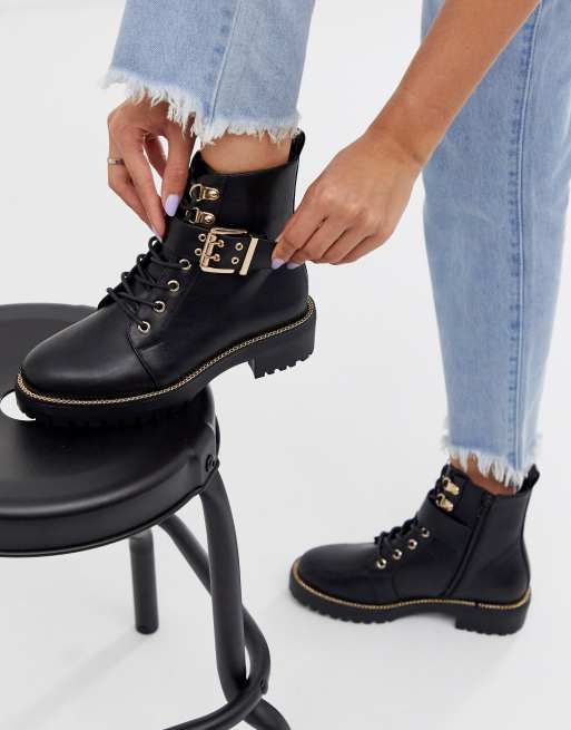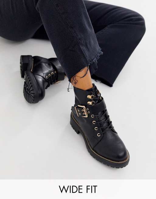 ASOS DESIGN Wide Fit Armour chain lace up ankle boots in black