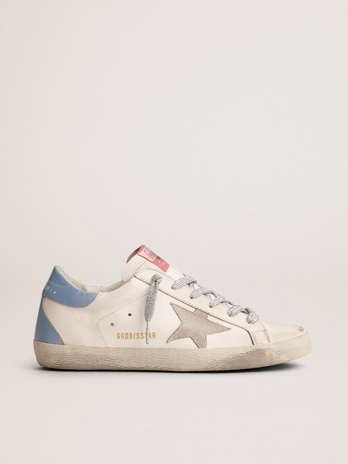 Super Star sneakers with light blue heel tab and ice gray star