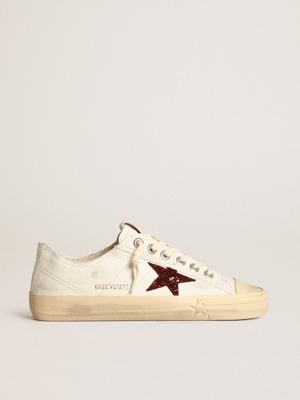 V Star sneakers in red sequins with cream colored leather star and red grosgrain heel tab