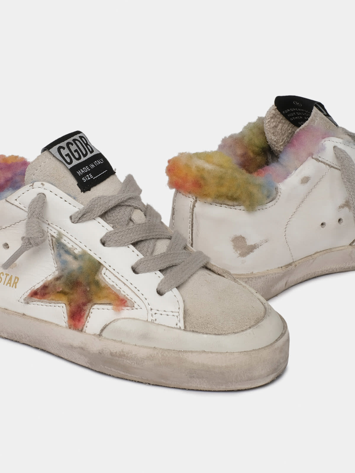 Golden goose rainbow clearance star, Super Star sneakers with rainbow shearling inserts clearance