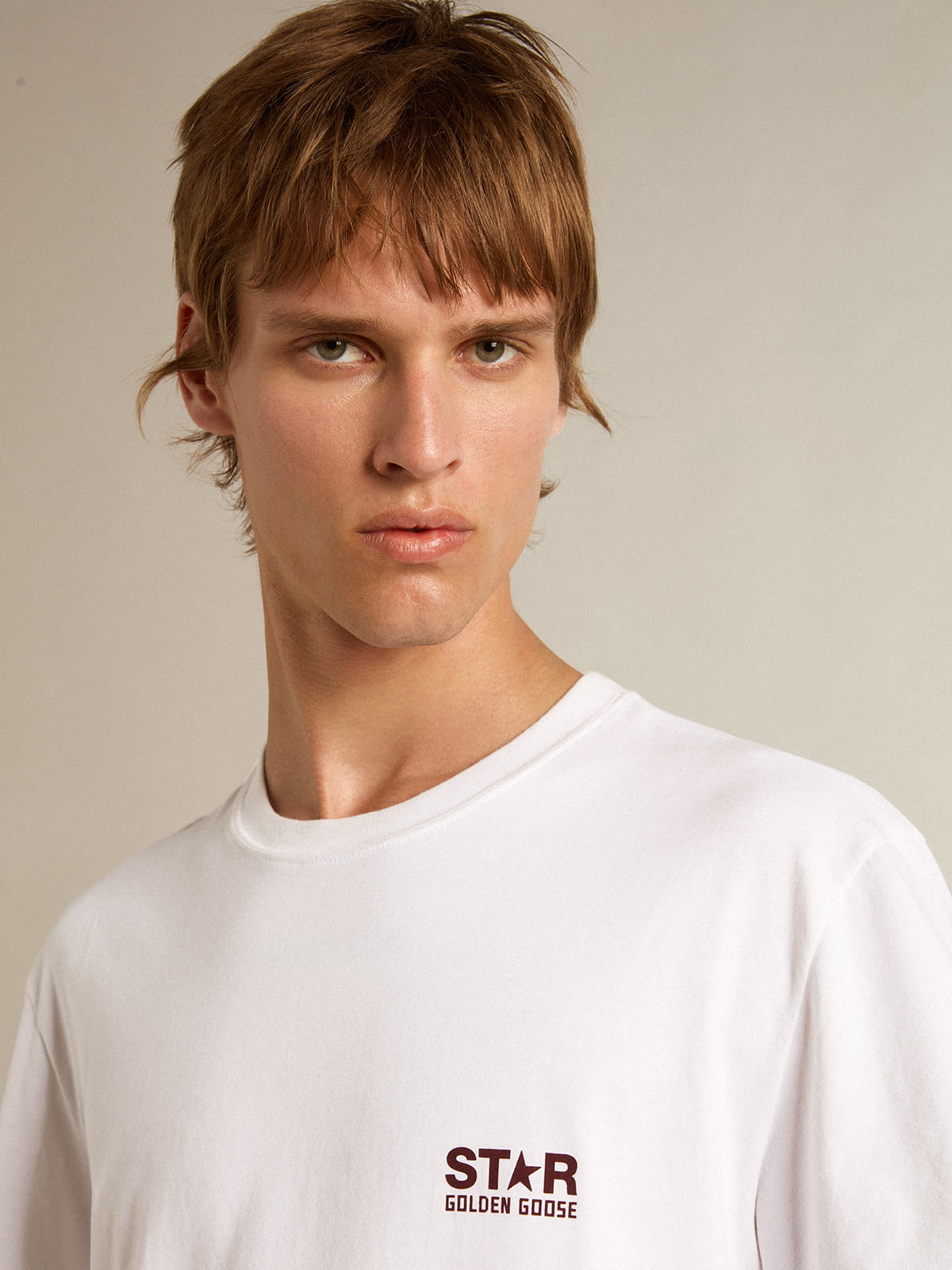 Golden goose t clearance shirt, Men s cotton T shirt in aged white with green lettering clearance