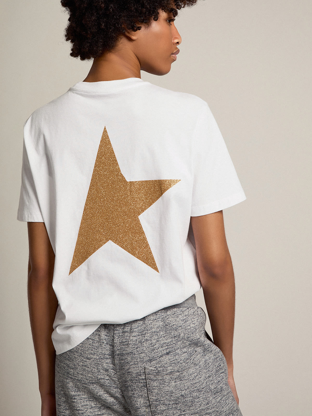 T shirt golden clearance goose, White Star Collection T shirt with logo and star in gold glitter clearance