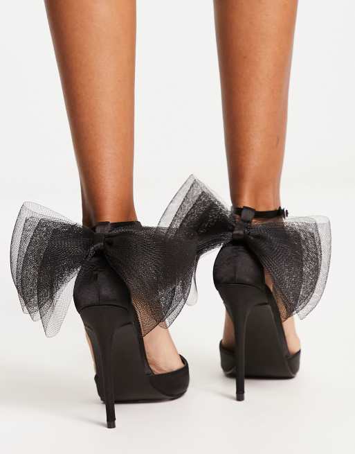 Public Desire Wide Fit Belle pointed shoes with tulle bow in black
