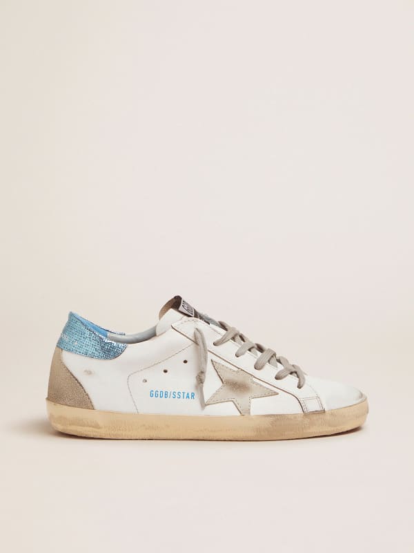 White Super Star LTD sneakers with blue laminated heel tab Golden Goose
