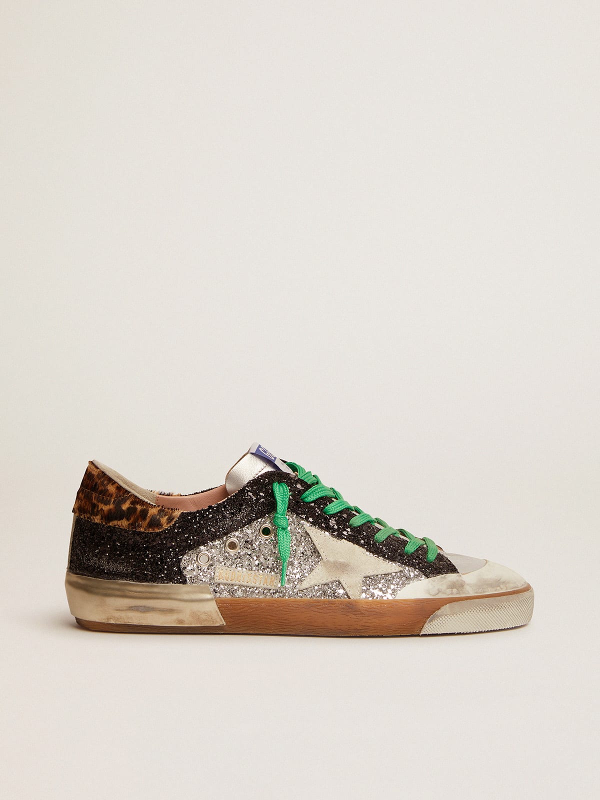 Super Star sneakers in silver glitter and multi foxing