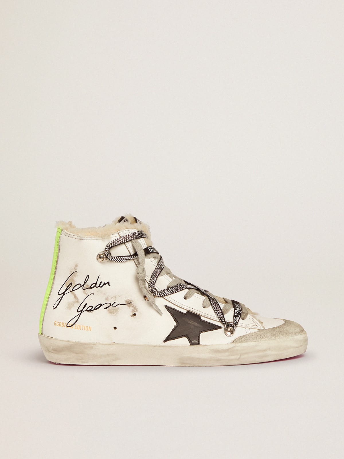 Golden goose francy clearance shearling, Francy sneakers in black suede with corduroy print and shearling lining clearance