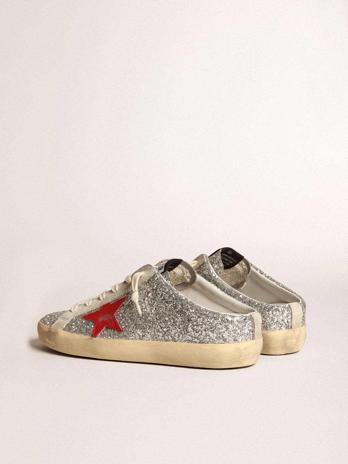 Red glitter golden clearance goose, Women s Super Star Sabot in silver glitter with red leather star clearance