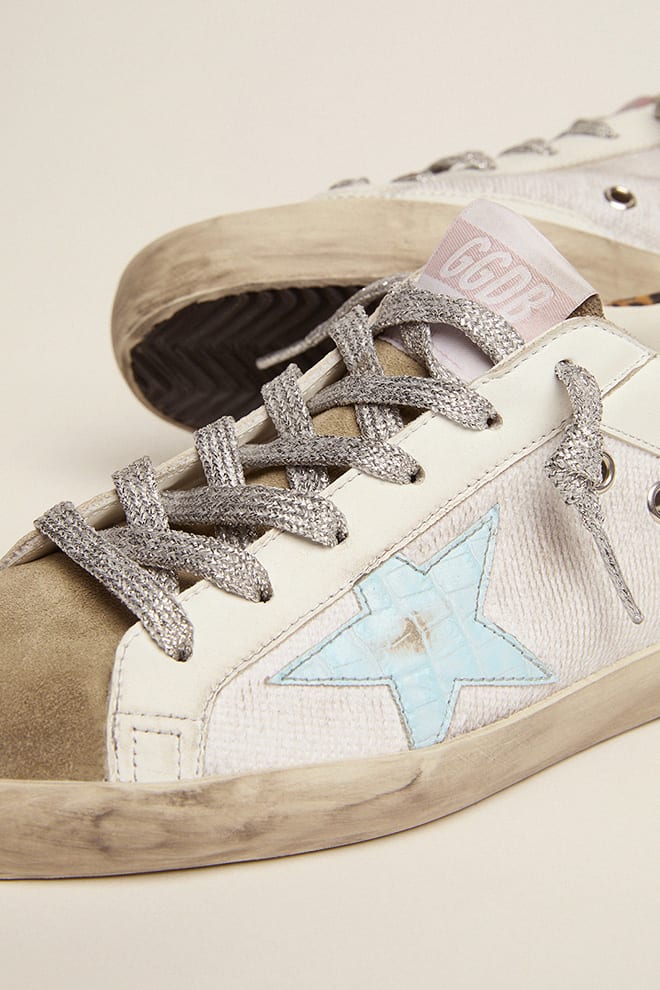 Super Star in canvas and leather with light blue star and leopard heel tab