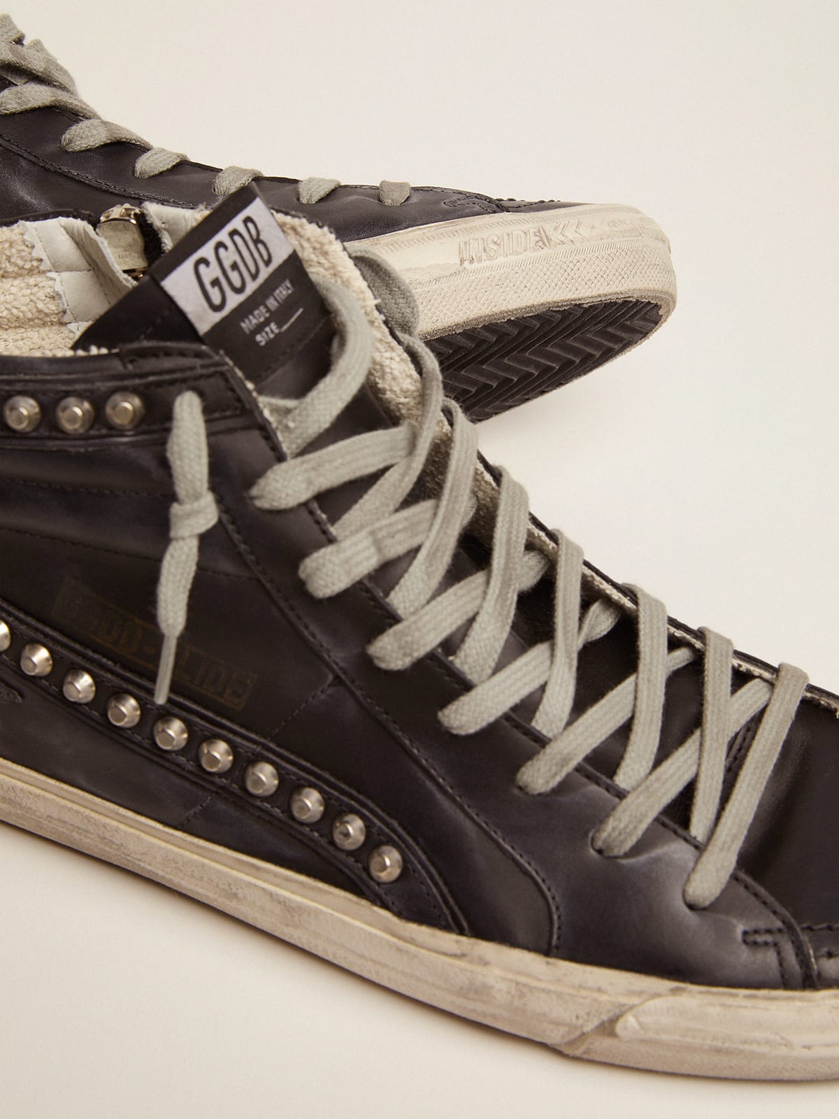 Golden goose slide clearance sneakers with studs, Slide distressed suede trimmed leather and Lurex high top sneakers clearance