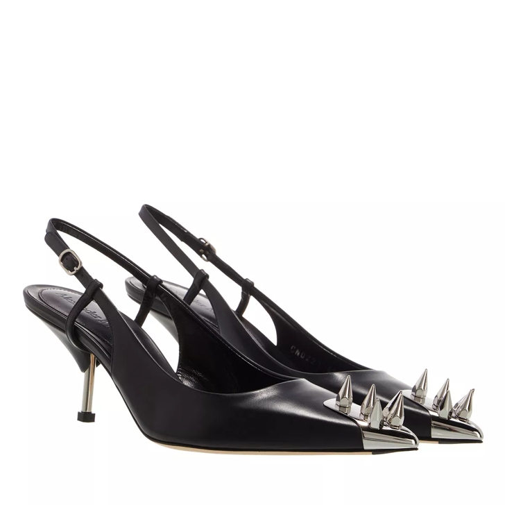 Alexander McQueen Punk Stud Slingback Pumps Leather Black Silver