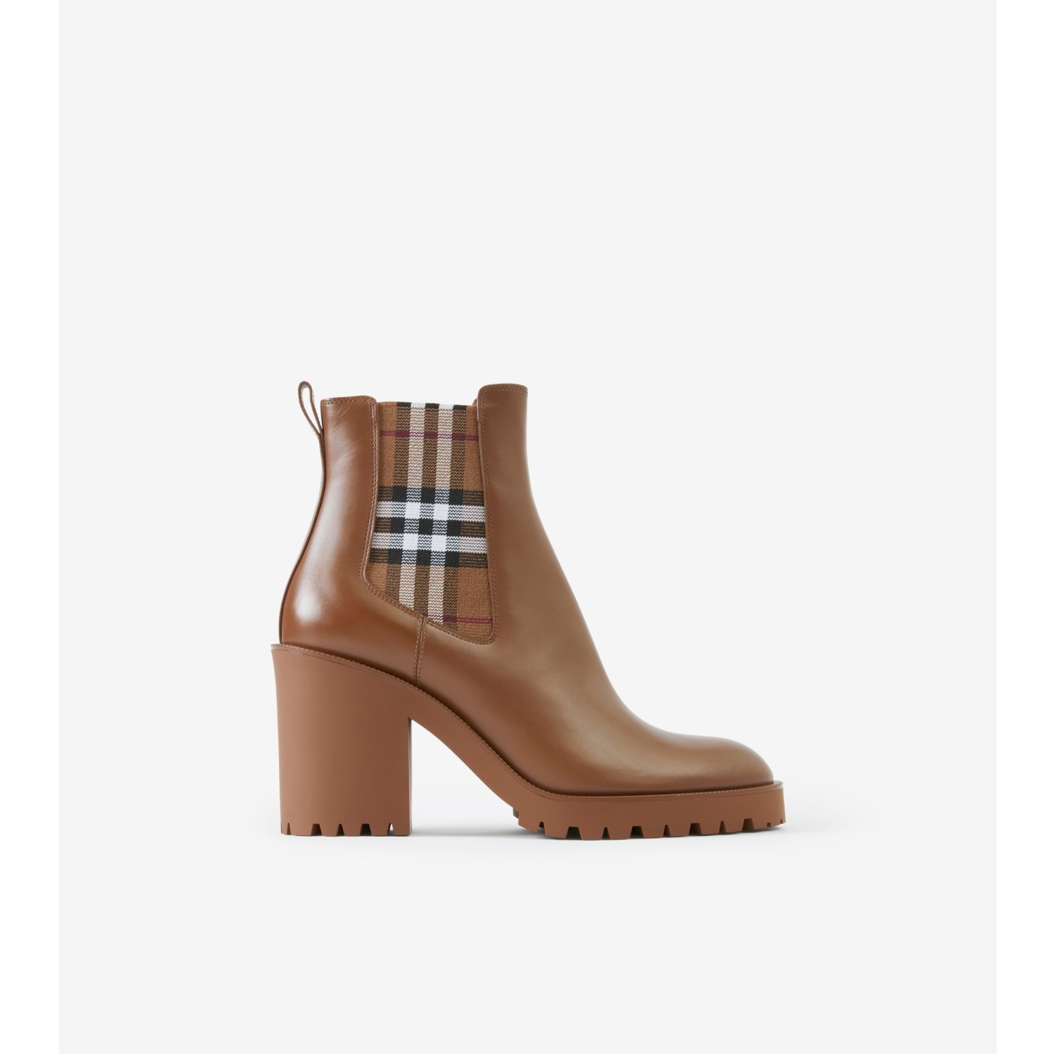 Check Panel Leather Ankle Boots in Dark birch brown Women Burberry Official