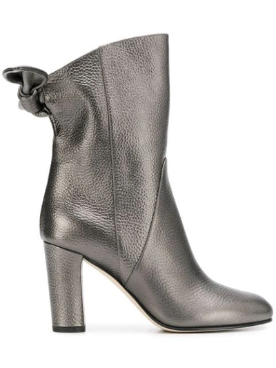 Malene 85 Anthracite Metallic Grainy Leather Boots In Grey