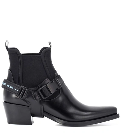 Prada Leather And Neoprene Ankle Boots In Black ModeSens