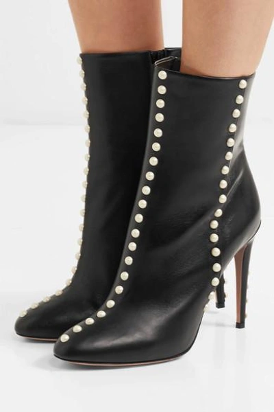 Aquazzura clearance pearl boots, AQUAZZURA PEARL FOLIE BOOTS IN BLACK black calfskin clearance