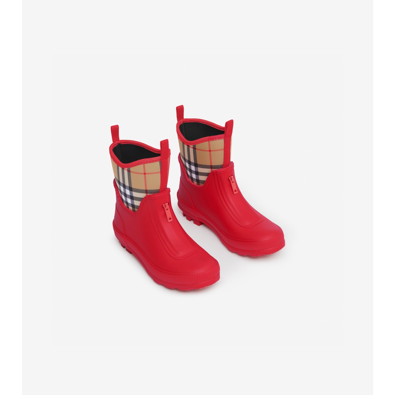 Vintage Check Neoprene and Rubber Rain Boots in Bright Red Children Burberry Official