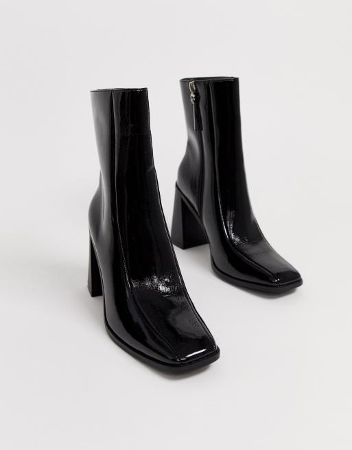 Co Wren square toe block heel ankle boots in black