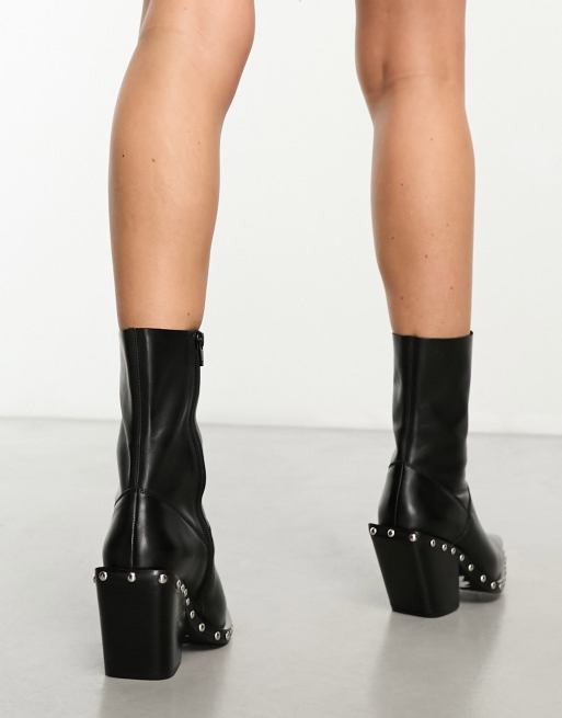 ASOS DESIGN Russo leather western boots with studs in black ASOS
