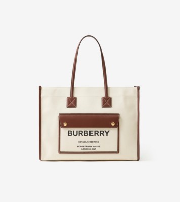 Medium Freya Tote in Natural tan Women Canvas Burberry Official