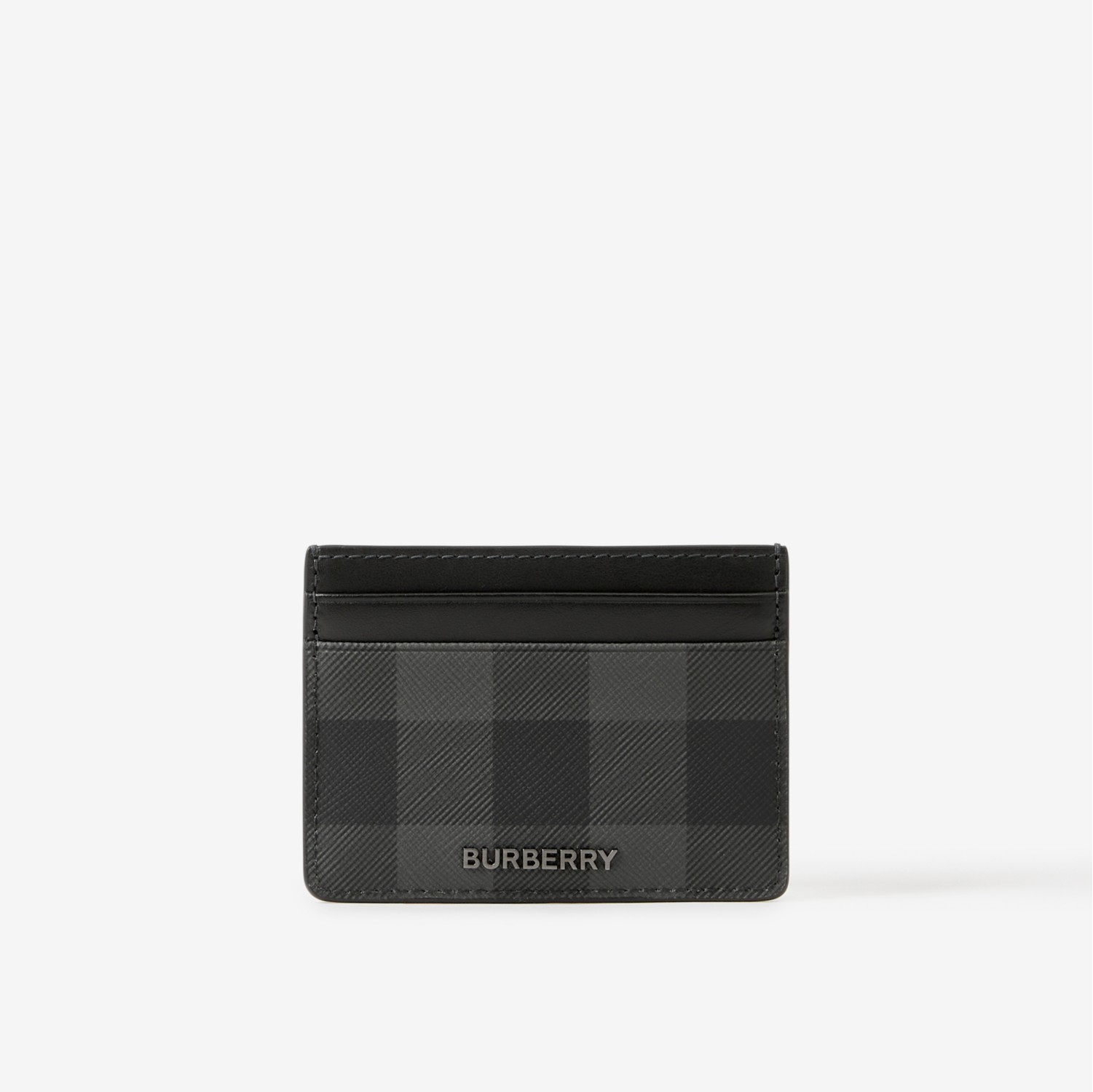 Check and Leather Card Case in Charcoal Men Canvas Burberry