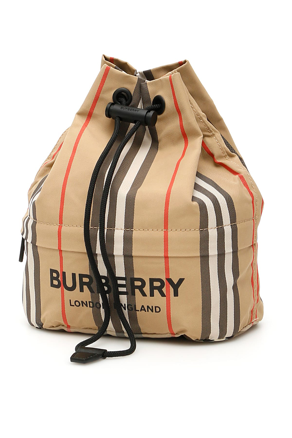 BURBERRY Phoebe Icon Stripe Drawstring Bucket Bag Beige