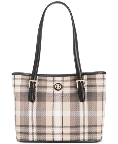 Giani Bernini Saffiano Plaid Tote Create For Macy s In Oatmeal