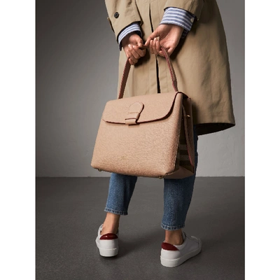 Burberry Medium Grainy Leather And House Check Tote Bag In Pale