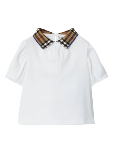 Burberry Kids Vintage Check White Cotton Polo Shirt Boys Size 12 M