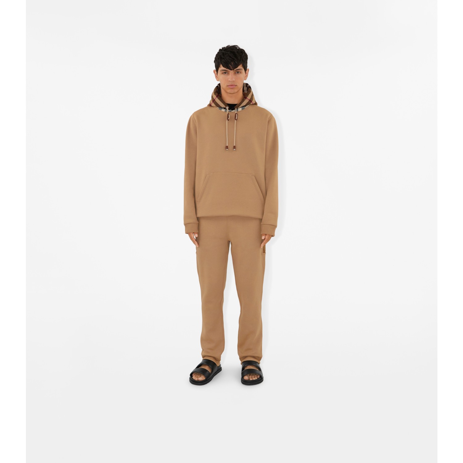 Check Trim Cotton Blend Jogging Pants in Camel Men Burberry