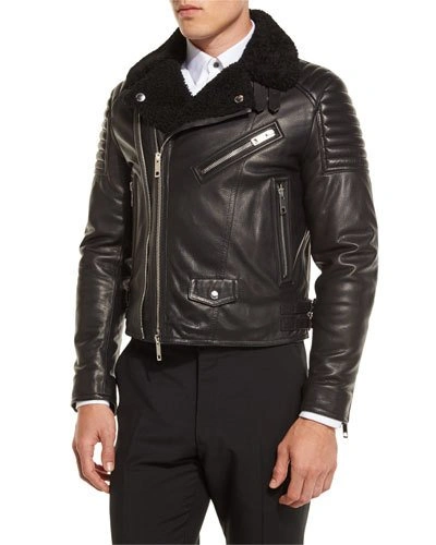 Burberry shearling biker clearance jacket, BURBERRY PRORSUM FW 2010 Size 38 Blue Black Lamb Leather Shearling clearance