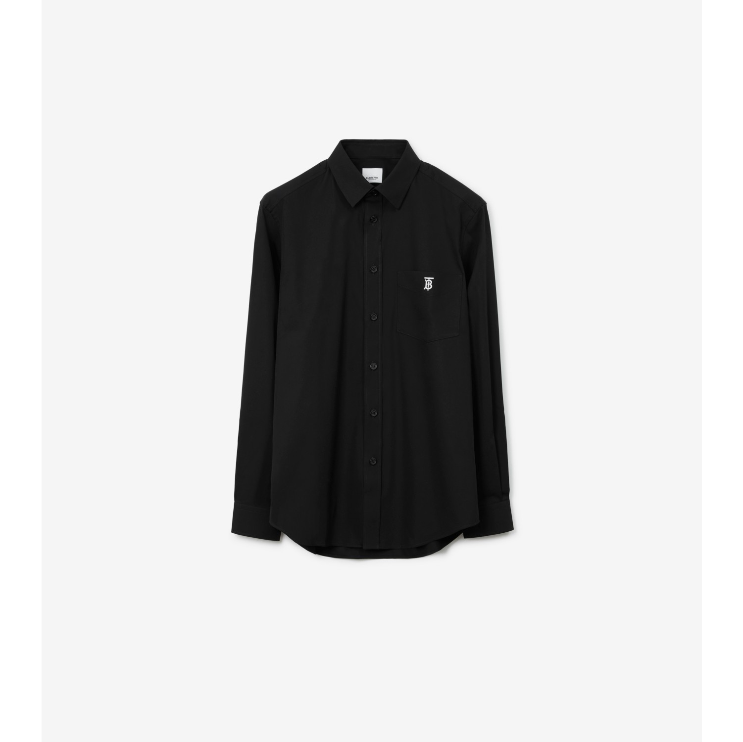 Monogram Motif Technical Cotton Shirt in Black Men Burberry
