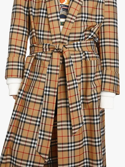 Reissued vintage check clearance dressing gown coat, Tan Plaid Inspired Sleeve Sustainable Wrap Dress BeYou clearance