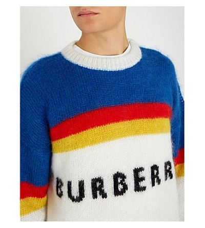 Burberry striped logo intarsia clearance mohair wool blend sweater