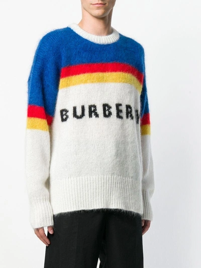 Burberry Striped Logo Intarsia Mohair Wool Blend Sweater In White