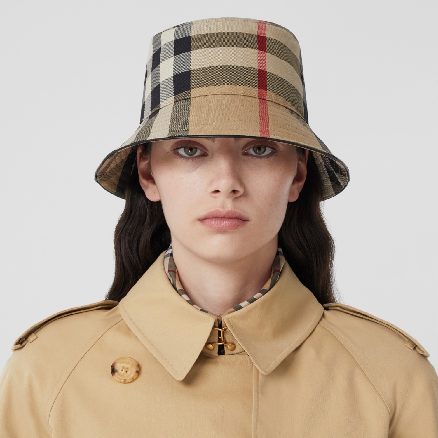 Exaggerated Check Cotton Bucket Hat in Archive beige Men