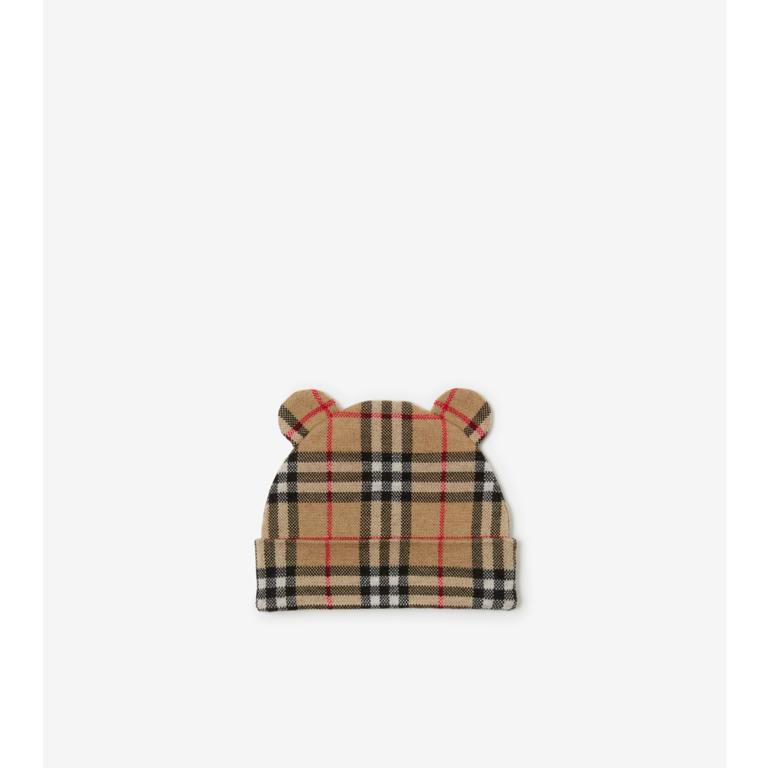 Check Wool Teddy Beanie in Archive beige Children Burberry