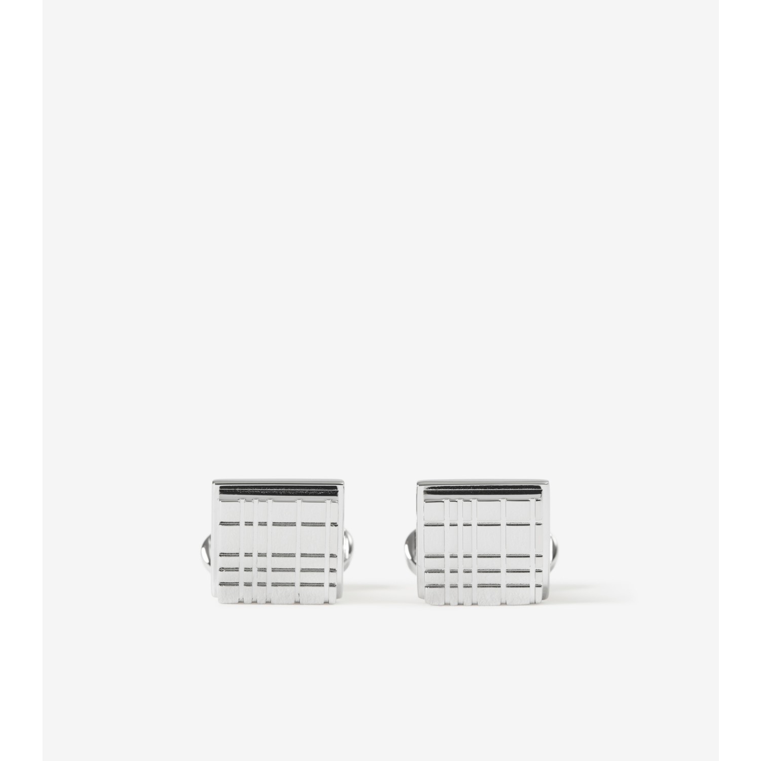 Check Engraved Palladium plated Square Cufflinks Men Burberry