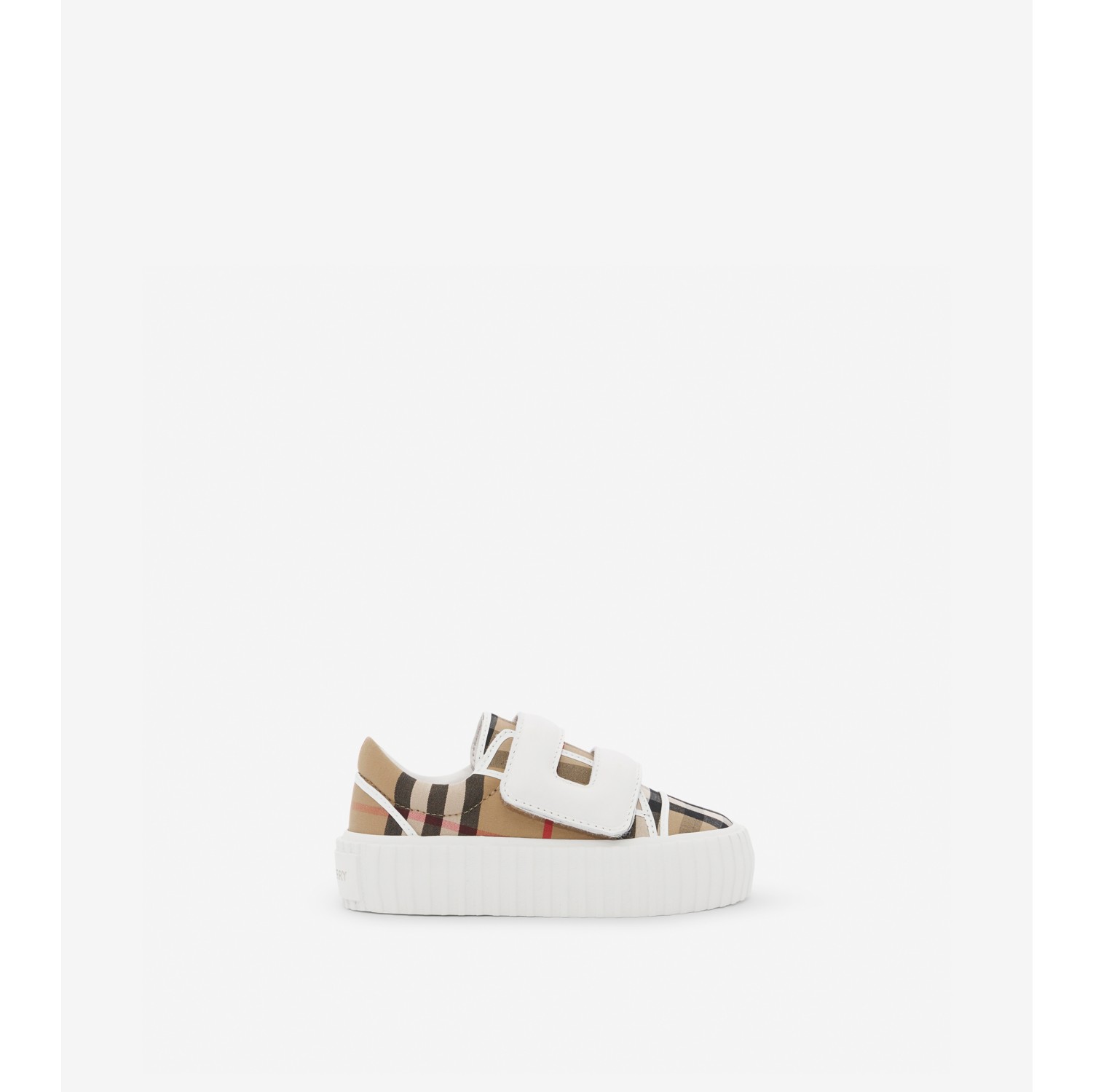 Check Cotton Sneakers in Archive beige Children Burberry Official