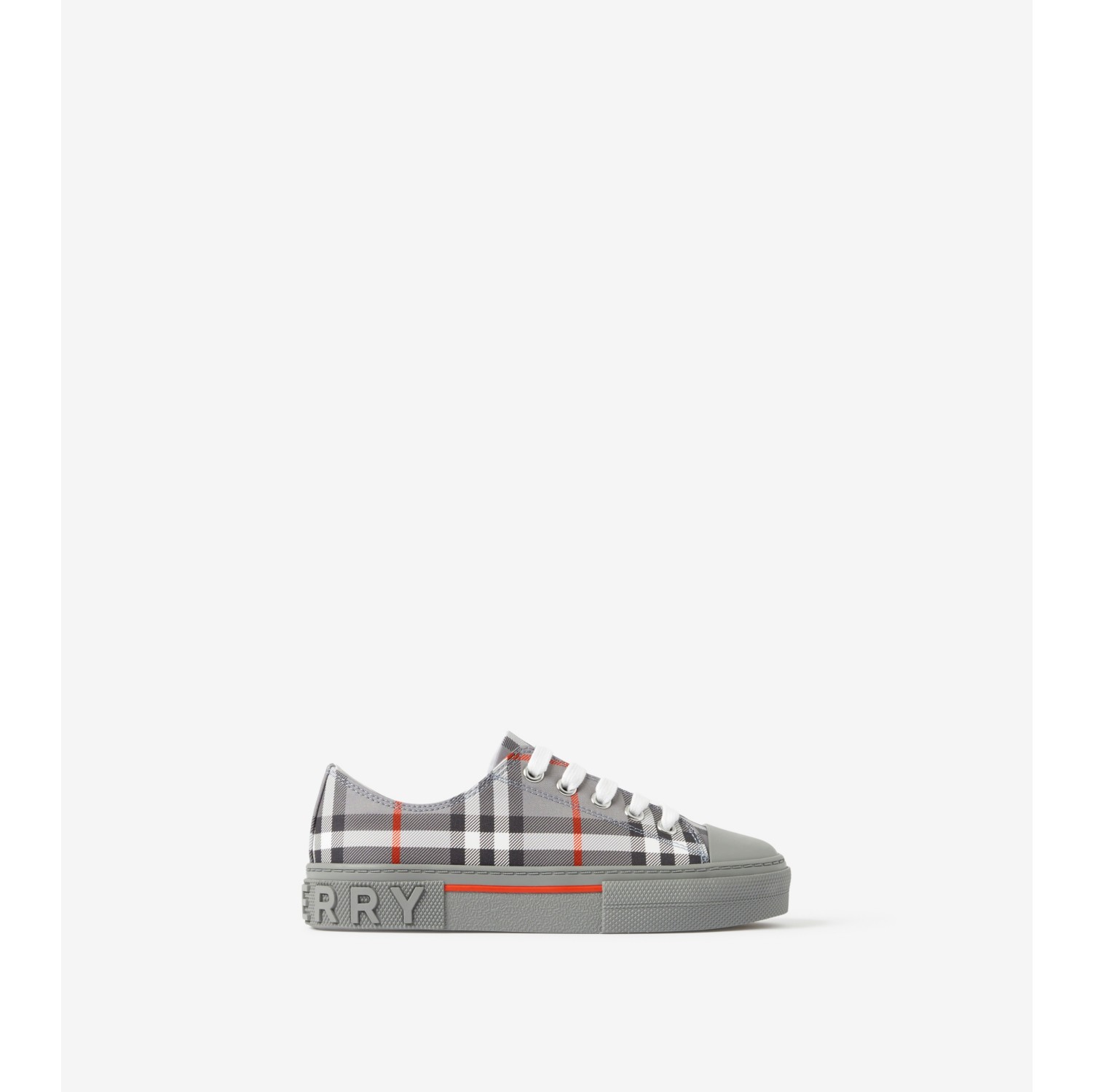 Check Cotton Sneakers in Cool Charcoal Grey Children Burberry