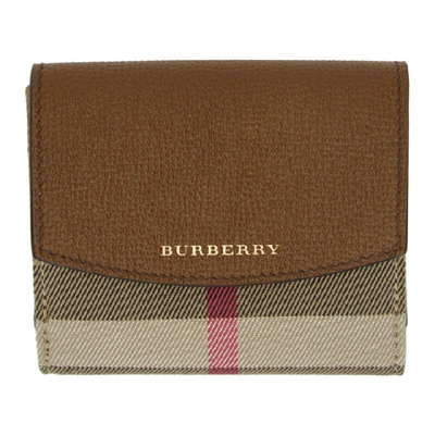 Burberry Luna House Check Derby Leather French Wallet In Tan gold