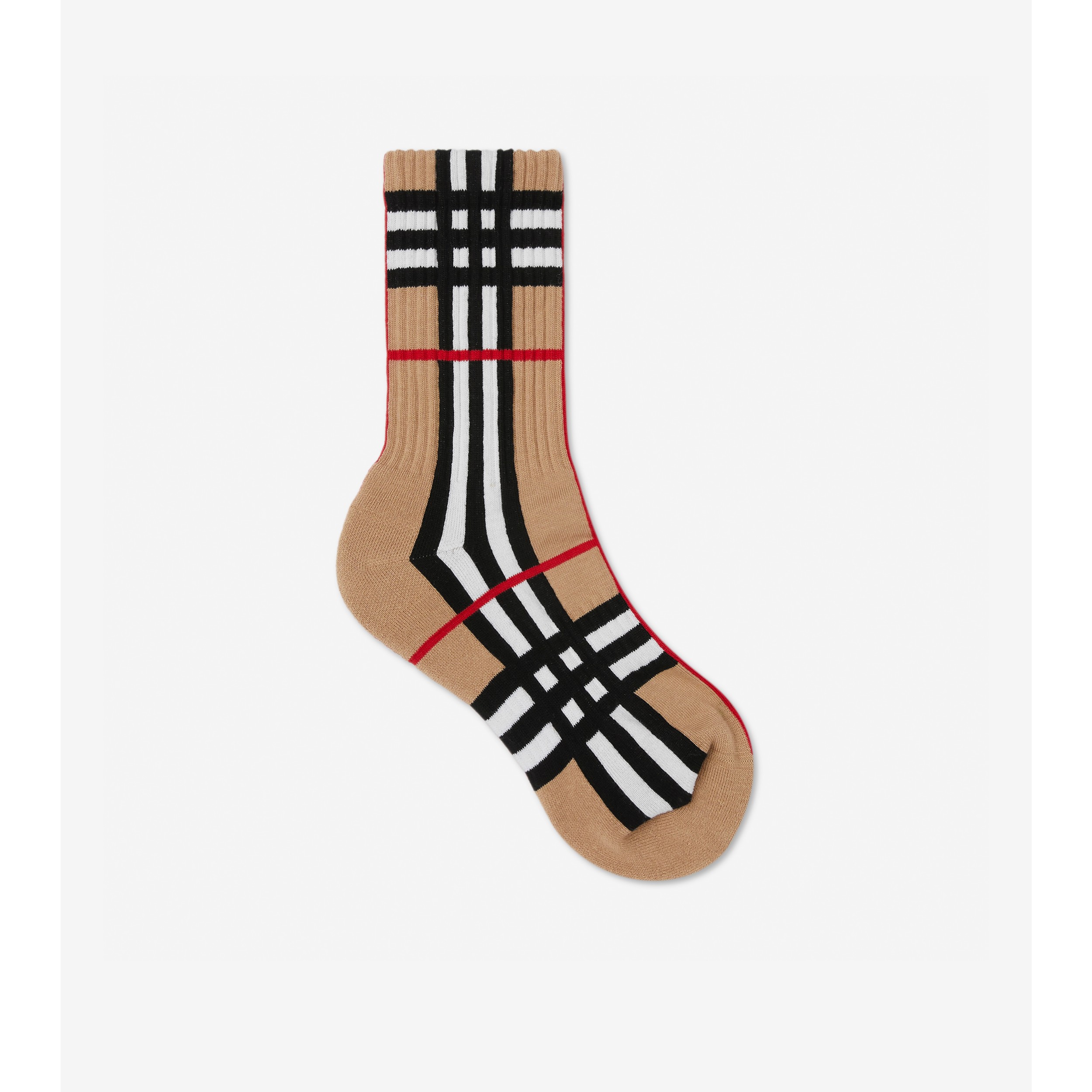 Check Intarsia Technical Stretch Cotton Socks in Archive beige