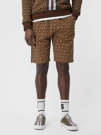 Burberry clearance monogram shorts, Burberry Monogram Stripe Print Cotton Drawcord Shorts In Brown clearance