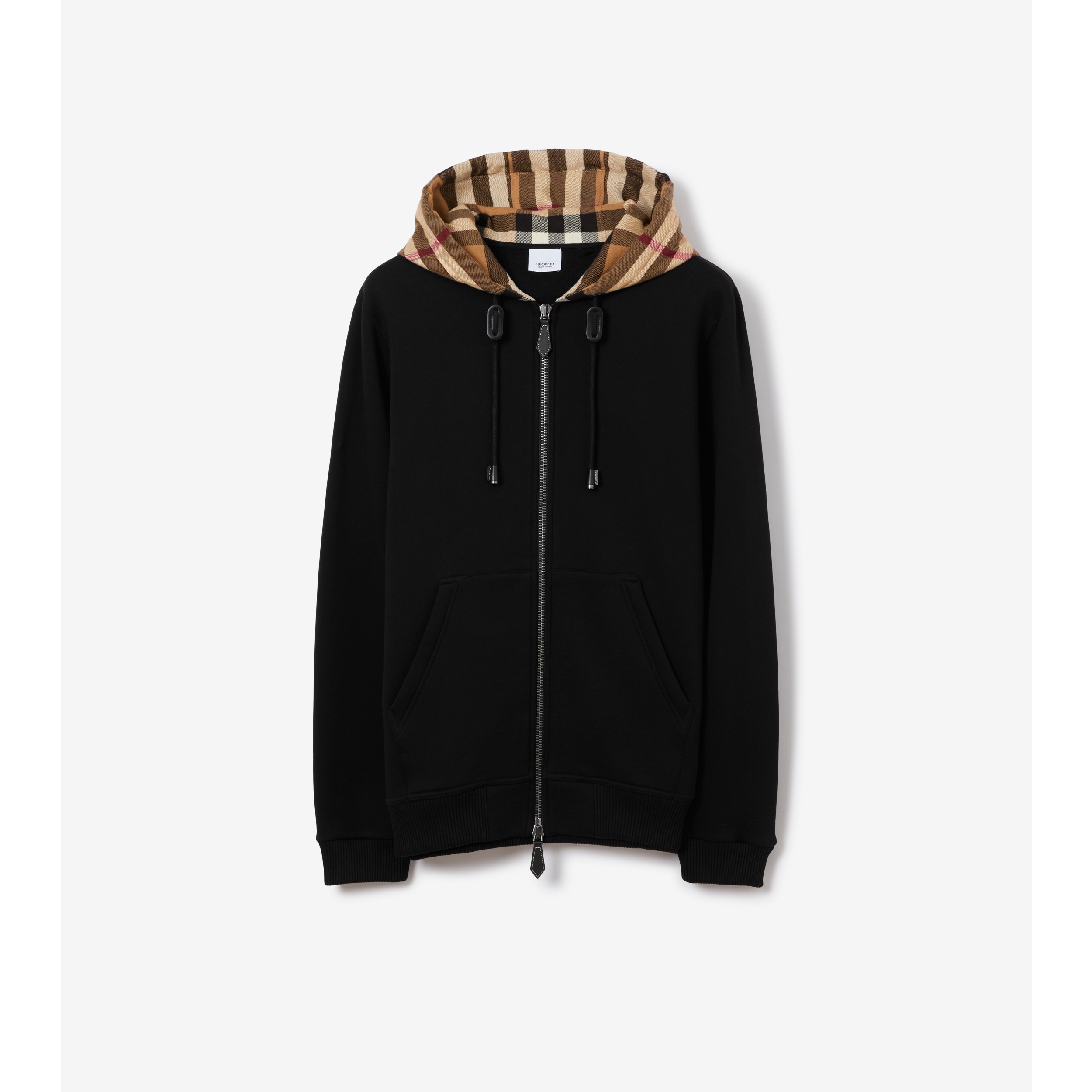 Check Hood Cotton Zip Hoodie in Black archive beige Men