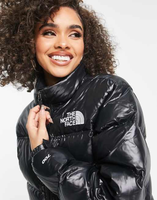 The North Face Nuptse cropped down puffer jacket in black ASOS