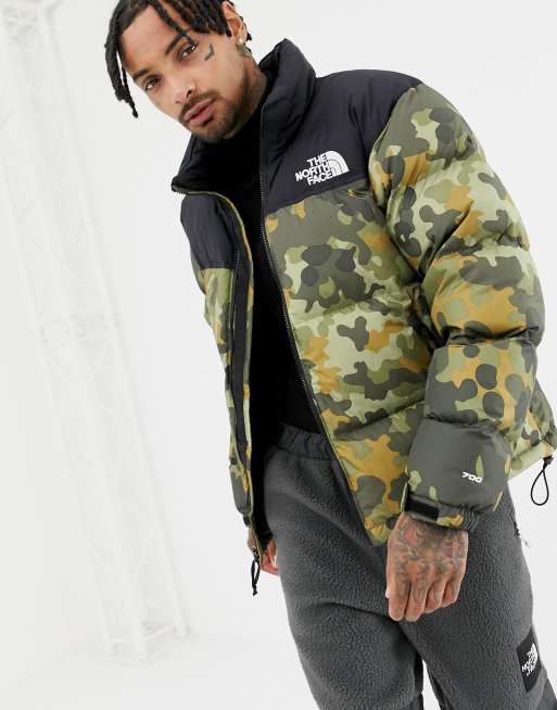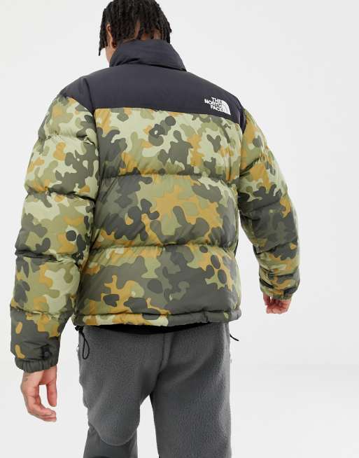 The North Face Mens 1996 Nuptse Jacket New Taupe Green Camo Print