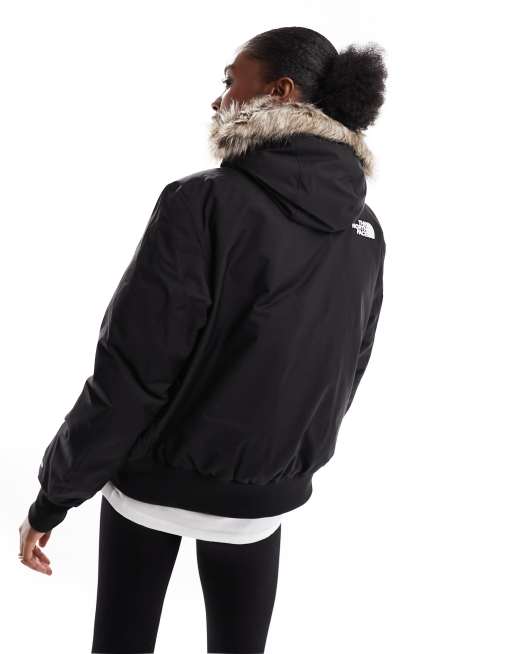 The North Face Arctic bomber jacket with faux fur trim in black ASOS