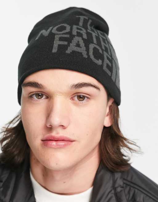 The North Face Banner reversible beanie in dark grey and black ASOS